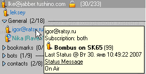 На втором примере можно увидеть, как наглядно в JAJC отображаются контакты, которые имеют больше одного ресурса: они представлены в виде раскрывающейся секции, в которой можно выбрать ресурс, с которым вы хотите обмениваться сообщениями.