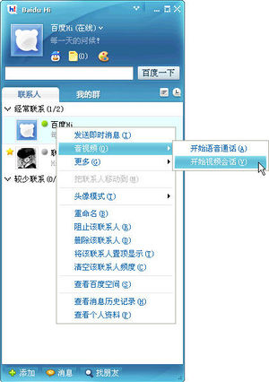Baidu Hi - IM-служба от китайской национальной поисковой системы Baidu. Чтобы упрощенно описать Baidu, можно сказать, что это китайский Yandex: те же лидирующие позиции и набор различных сервисов для пользователей. Соответственно, появившаяся в начале 2008 года собственная система мгновенного обмена сообщениями, дополняет их ряд.