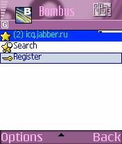 Всё, настройка аккаунта закончена, теперь войдите в меню и нажмите OK. Bombus попытается подключиться к серверу, на экране телефона появится запрос, разрешить ли это соединение. Отвечайте утвердительно и далее будут отображаться этапы подключения: Connecting → Registering → Done (если Вы выбрали пункт Register Aсcount).