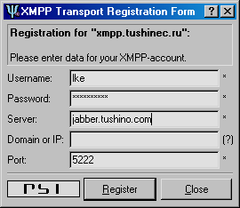 In the Username field you must enter username of guest account. Password is a password for guest account. In the Server field you must enter just a hostname of your guest Jabber server.