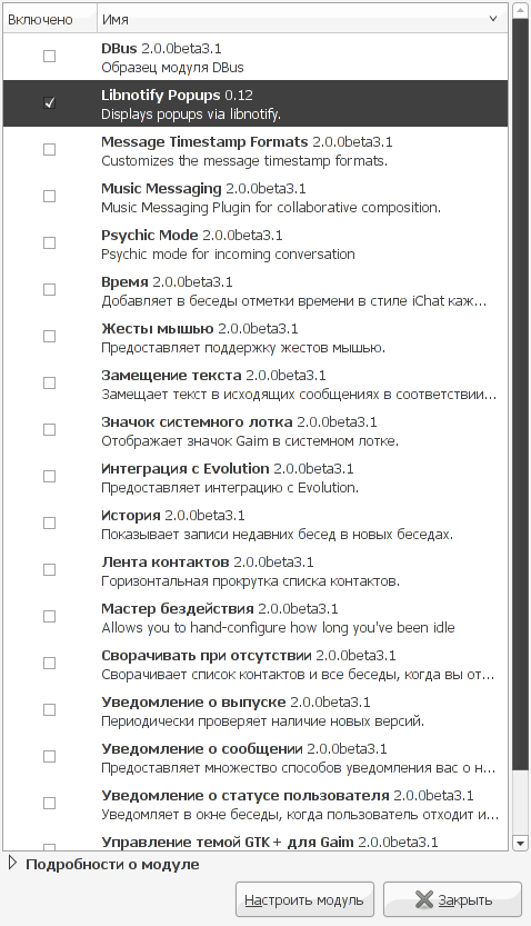 Gaim - управление дополнительными модулями Автор скриншота: Андрей Тряпичников (vonderer)