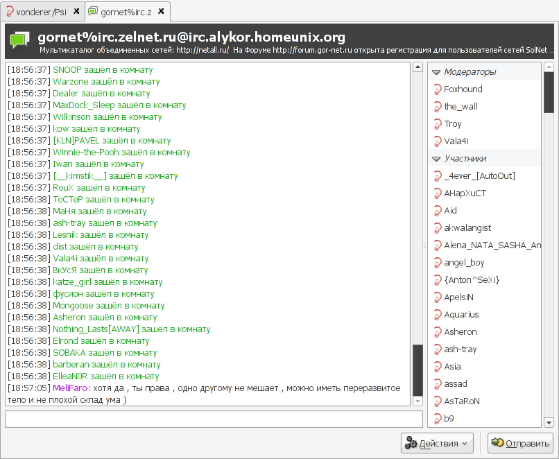 Gajim - групповой чат Автор скриншота: Андрей Тряпичников (vonderer)