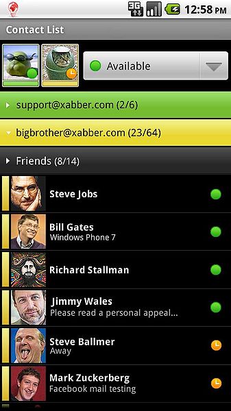 | current | 18:05, 26 February 2011 | 480 × 854 (63 KB) | Exterminatus (Talk | contribs) | Скриншот клиента Xabber со страницы в Android-маркете. |