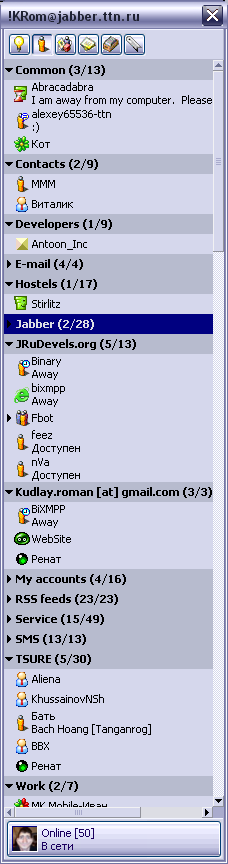 | Так выглядит главное окно клиента с ростером. (Отправить скриншот своего JAJC) |