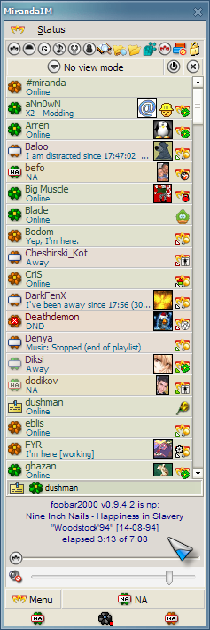 • Пользователя Миранды можно опознать по статусу. По умолчанию он содержит текст Yep, I'm here.