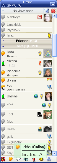 Ниже представлены различные варианты внешнего вида клиента. Показаны ситуации, когда используется jabber-компонента.