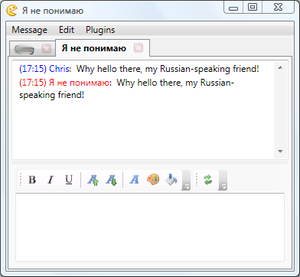 Изначально jabber-функциональность была реализована посредством собственной библиотеки (автор называл её JabberLib, хотя такой проект уже существовал ранее), но затем клиент был переведен на использование JabberNet.