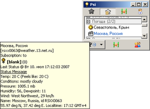 Скриншот варианта отображения погодного сервиса в клиенте Psi с набором иконок weather