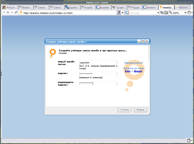 | 08:06, 25 February 2007 | Meebo-reg.png (file) | 43 KB | Applesin | Регистрация в сервисе. Вовсе необязательна, но мы как истенные Сусанины хотим пройти всю дорогу. | 1 | |