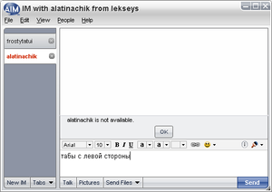 В Америке может претендовать на роль национальной IM-службы (ее пользователи в основном американцы). Не последнюю роль в этом сыграло, что AOL осуществляет деятельность в области предоставления услуг доступа к интернет (ISP). Так же, как и ICQ, использует протокол OSCAR, тем не менее большинство клиентов для этих систем не совместимы.